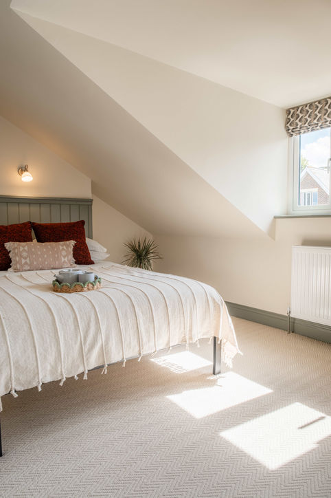 If we shared the “before” photos, you wouldn’t believe it! This stunning HMO, located in a conservation area of Dorchester, has been completely transformed. We developed a scheme and colour palette sympathetic to its heritage and supported it with a full specification — from paints and flooring to bathrooms and kitchens. Warm neutrals and earthy greens are puntuated with black accents and terracotta touches, this creates a timeless, elegant interior with a nod towards the history of this property.
